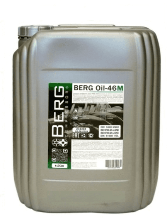 Преимущества масла Berg Oil-46M: -Обладает отличными износостойкими и антикоррозионными свойствами, которые продлевают срок службы компрессора; -Высокая износостойкость даже при высоких температурах; -Повышенная термоокислительная стабильность - увеличение срока службы смазочного материала; -Минимизация отложений даже при длительной эксплуатации; Технические характеристики: Тип масла минеральное Объем 20 л Применение для винтовых компрессоров Кинематическая вязкость при 40°C, мм²/с - 46