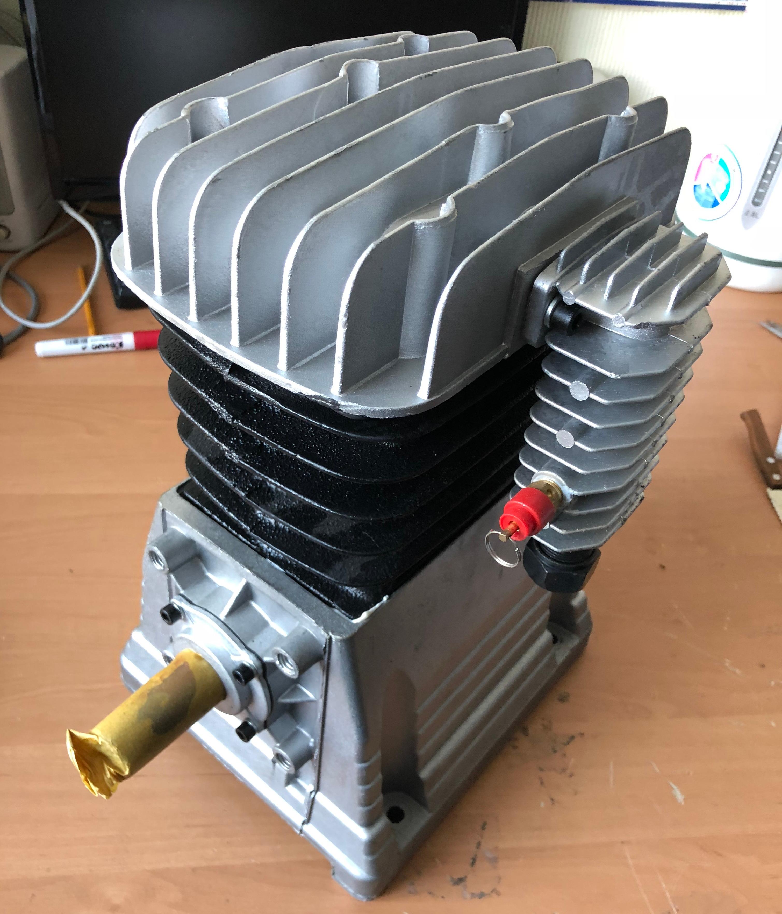 Блок поршневой B10000B компрессорная головка с воздушным охлаждением предназначен для выработки сжатого воздуха. Смазка трущихся поверхностей деталей компрессорной головки B6800 осуществляется разбрызгиванием масла. Заливка масла в картер производится через отверстие в крышке блока цилиндров после снятия сапуна, слив масла через отверстие в днище картера закрытое пробкой, контроль уровня масла через смотровое окно. Поставляется в сборе со шкивом (маховиком), а так же воздушным фильтром. Технические характеристики: Вид: двухцилиндровая, одноступенчатая Вес: 44 кг Производительность: 1050 л/мин Давление: 10 Бар