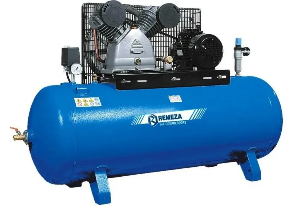Это мощный поршневой компрессор с ременным приводом, предназначенный для использования на промышленных предприятиях и станциях сервисного обслуживания. Агрегат специально оборудован холодильным осушителем и специальным магистральным фильтром для получения качественного сжатого воздуха. Ключевые преимущества: Подготовка воздуха: Встроенный холодильный осушитель эффективно удаляет влагу, что препятствует запотеванию и коррозии труб, а также продлевает срок службы пневмоинструмента. Высокая производительность: Мощный двигатель на 5,5 кВт обеспечивает производительность до 880 л/мин (на входе). Надежная конструкция: Компрессор с ременной системой привода имеет чугунные головки, которые повышают мощность и КПД устройства. Удобство контроля: Все контрольные приборы размещены на кожухе компрессора для легкого доступа и мониторинга работы. Большой объем ресивера: Горизонтальный ресивер объемом 270 литров обеспечивает достаточный запас сжатого воздуха. Технические характеристики: Характеристика: Значение Производитель: Remeza (Беларусь) Вид компрессора: Поршневой, маслозаполненный Тип привода: Ременной Объем ресивера: 270 л (горизонтальный) Производительность (на входе): 880 л/мин Максимальное рабочее давление: 10 атм (бар) Мощность двигателя: 5,5 кВт Напряжение питания: 380 В (трехфазное) Оснащение: Холодильный осушитель, магистральный фильтр, манометр Габариты (Д×Ш×В): 1660х515х1100 мм Масса: 185 кг