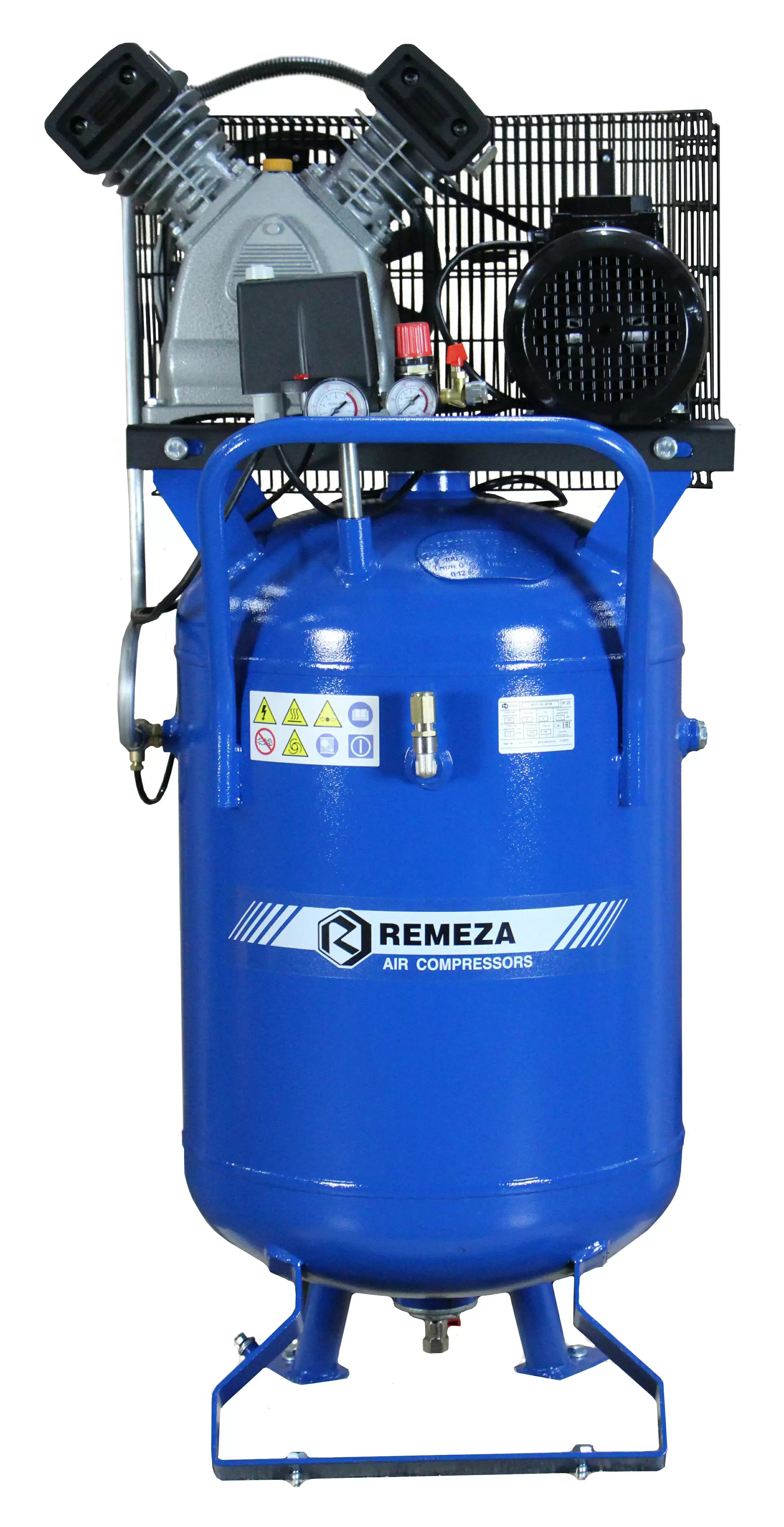 Это стационарный поршневой компрессор с ременным приводом, предназначенный для интенсивной работы в автомастерских, на строительных площадках и небольших производствах. Благодаря вертикальному ресиверу он позволяет экономить рабочее пространство. Ключевые преимущества: Высокая производительность: Мощность двигателя 4 кВт обеспечивает стабильный поток воздуха до 690 л/мин. Оптимальное давление: Рабочее давление до 10 бар (10 атм) подходит для широкого спектра профессиональных задач. Экономия пространства: Вертикальное расположение ресивера объемом 270 литров позволяет разместить компрессор даже в условиях ограниченного пространства. Надежная конструкция: Оснащен двухцилиндровым поршневым блоком и надежным ременным приводом. Металлический кожух защищает ременную передачу от повреждений. Производство в Беларуси: Качество и надежность компрессоров Remeza подтверждены многолетней историей производства. Технические характеристики: Производитель: Remeza (Беларусь) Вид компрессора: Поршневой, маслозаполненный Тип привода: Ременной Объем ресивера: 270 л (вертикальный) Производительность (на входе): 690 л/мин Максимальное рабочее давление: 10 бар Мощность двигателя: 4 кВт Напряжение питания: 380 В (трехфазное) Конфигурация (Цилиндры/ступени): 2 / 1 Тип охлаждения: Воздушное Вес: 180 кг [Вводные данные] Габариты (Д×Ш×В): 650x700x1750 мм [Вводные данные] Исполнение Стационарный [Вводные данные]