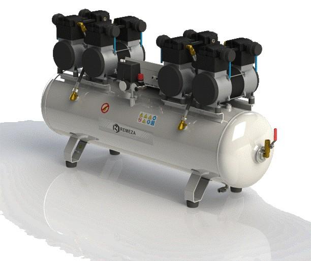 Компактный и тихий безмасляный компрессор с прямым приводом, идеально подходящий для применений, требующих чистого сжатого воздуха (например, в медицине, пищевой промышленности, или для чувствительного пневмооборудования). Характеристики: Вид компрессора: Поршневой Тип компрессора: Безмасляный Тип привода: Прямой Объем ресивера: 150 л Производительность (на входе): 800 л/мин Максимальное давление: 8 бар Мощность двигателя: 5,6 кВт (4 x 1,4 кВт) Напряжение питания: 380 В (трехфазное) Конфигурация (Цилиндры/ступени): 8 / 1 Уровень шума: 77 дБ Масса: 140 кг Габариты (Д×Ш×В): 1600×435×810 мм